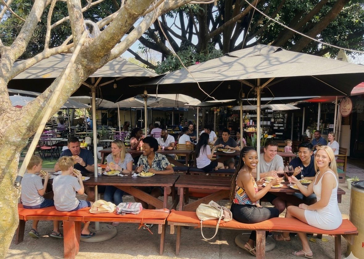 Sit down at one table under The Big Tree and order from multiple restaurants at the same time. Italian wood-fired pizza, smoked meats, Portuguese baking, authentic local Eswatini cuisine — and drinks from The Wine Boutique for everyone. Your whole group can each choose something completely different. No compromise necessary. This is a genuinely unique dining experience you will not find anywhere else in the region.
